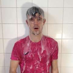 GARYWAM had a sloppy pie dumped all over his head by bsmessybakery